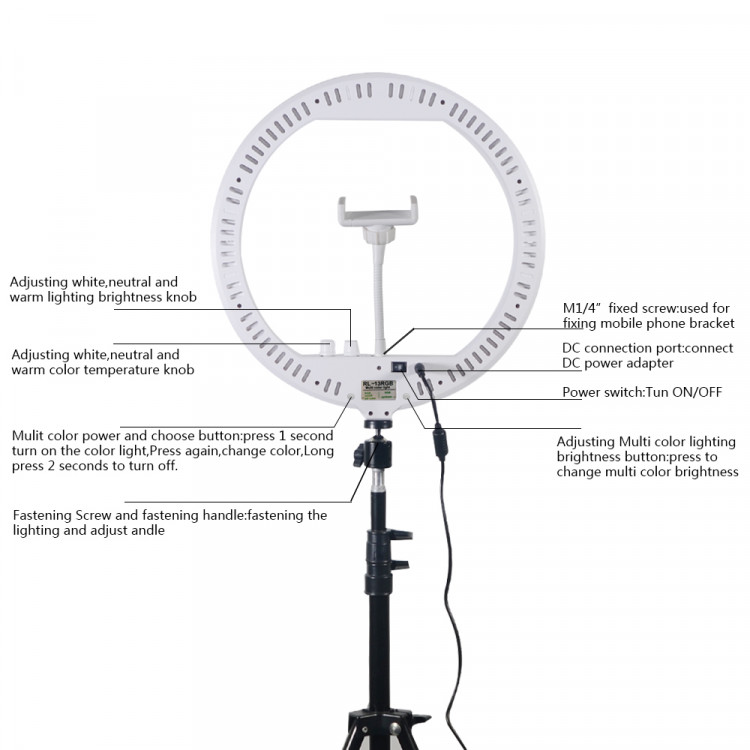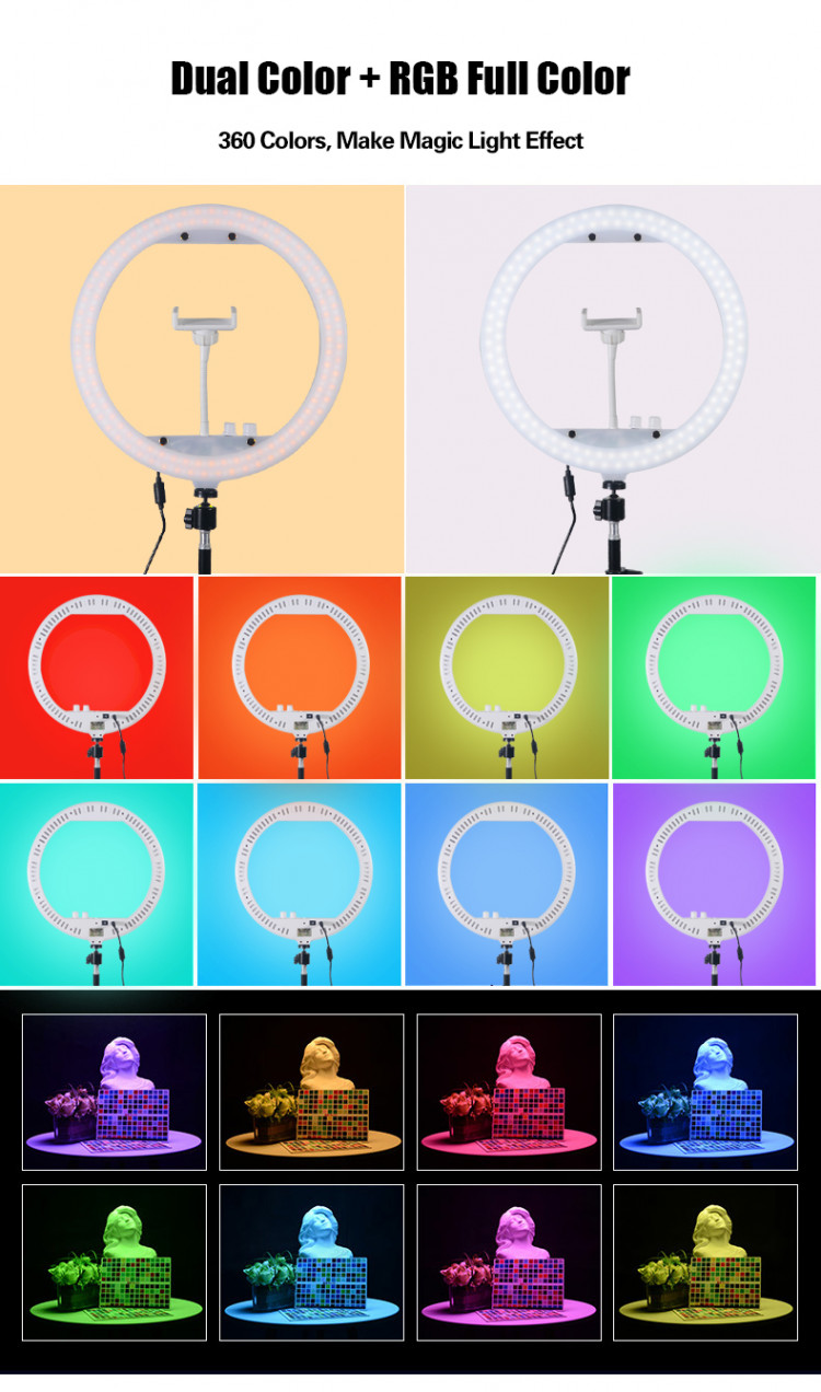 - Đèn LED RING Mcoplus được thiết kế theo dạng tròn gồm 240 đèn LED giúp bạn có được hiệu ứng ánh sáng mong muốn. Ngoài ra bạn có thể dễ dàng điều chỉnh độ sáng sao cho phù hợp với nhu cầu của mình. Không chỉ dừng lại ở độ sáng mà bóng còn có thể thay đổi nhiều màu sắc khác nhau để phục vụ mục đích khác.