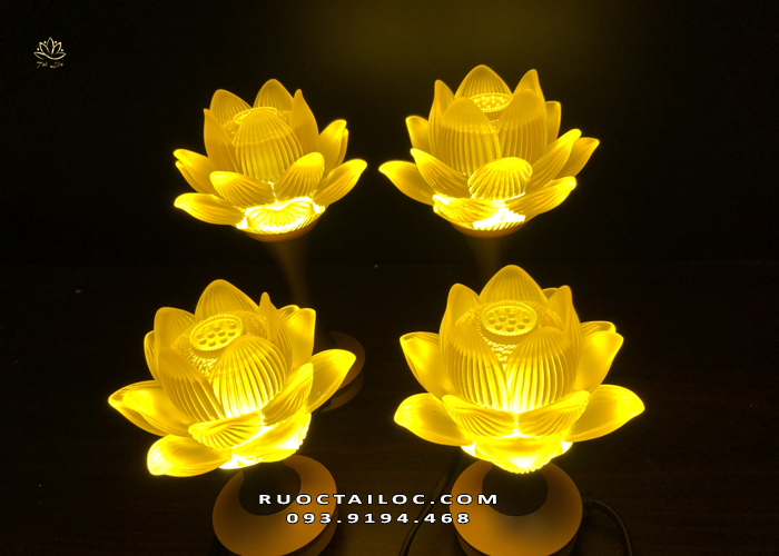 Đèn hoa sen lưu ly là mẫu đèn thờ cúng được nhiều khách hàng lựa chọn. Đặc biệt đèn có phần bông hoàn toàn tháo rời. Đèn có thể thay thế mạch khi hư hỏng. Đèn thờ hoa sen không chỉ có nhiệm vụ thắp sáng mà còn có họa tiết giống hoa sen trưng trên bàn thờ