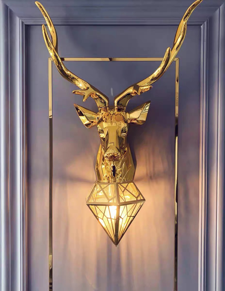 ️- Remi xin gửi tới anh chị mẫu Đèn treo tường Hình hươu vàng cao cấp này, với mong muốn rằng sẽ góp phần hoàn thiện không gian ngôi nhà của anh chị. Được thiết kế từ đá đúc kết hợp nhựa thông, tạo độ bền và sự sang trọng. Hình ảnh đầu hươu được thiết kế công phu, mạ vàng crom sáng bóng, tạo nét sinh động và sự sang trọng cho sản phẩm. Phần chụp đèn thiết kế kiểu dáng kim cương vừa bảo vệ bóng đèn, vừa là sự thiết kế sáng tạo và đầy thẩm mỹ.