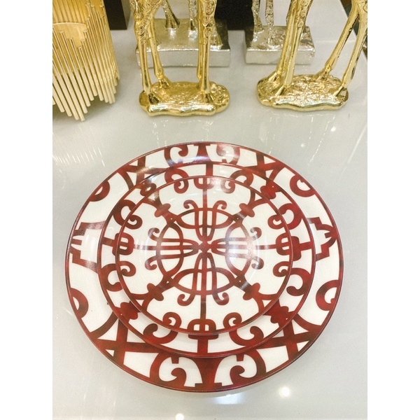 Giới thiệu Đĩa phong cách Bắc Âu sang trọng, viền vàng, bát đĩa ăn tiệc cao cấp, đĩa salad, đĩa chính, đĩa hoạ tiết đỏ