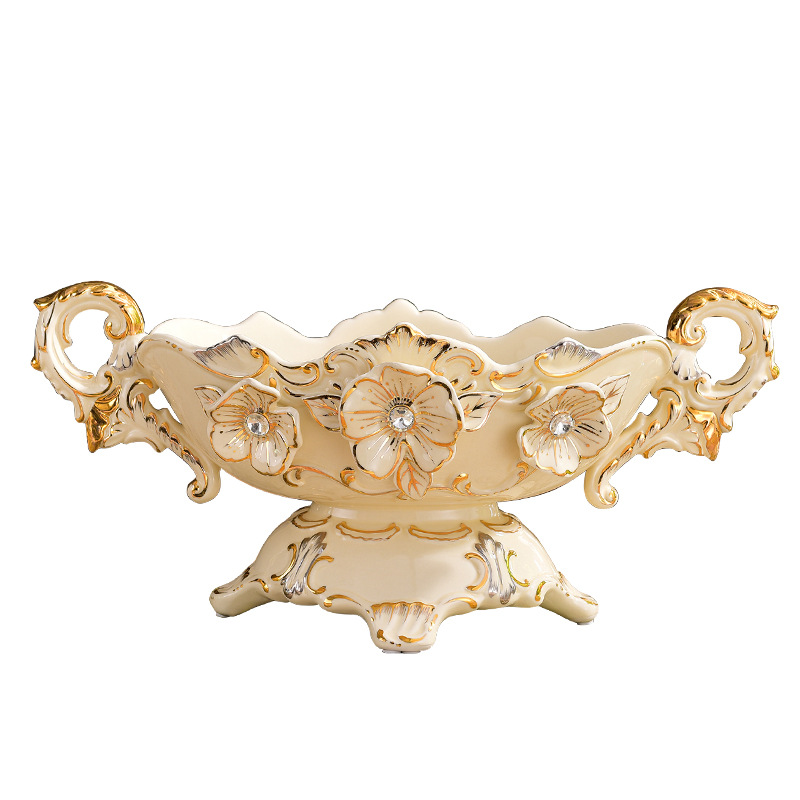 Tên sản phẩm: Đĩa quả họa tiết hoa mai đắp nổi đính đá mang phong cách tân cổ điển sang trọng CB21-DQ1.