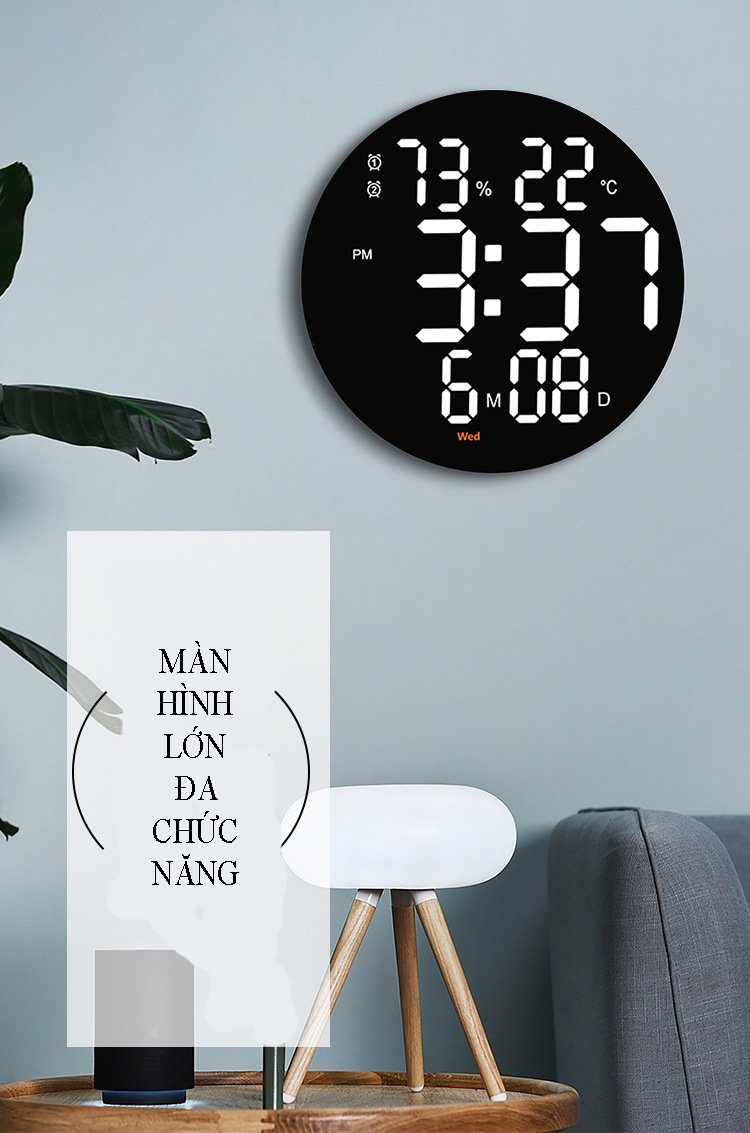 Đồng Hồ Treo Tường Tròn LED Điện Tử Màn Hình Lớn Hiển Thị Nhiệt Độ, Ngày Tháng Điều Khiển Từ Xa DS-6630
