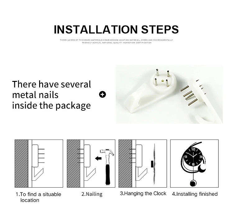 Nếu bạn đang lo ngại sản phẩm đồng hồ treo tường quả lắc khó lắp đặt, khó khăn trong việc khoan tường để treo đồng hồ và có thể làm hư hại tường nhà bạn. Xin bạn yên tâm, sản phẩm đồng hồ được thiết kế để dể dàng treo lên tường với móc dán chịu lực được kèm theo bên trong sản phẩm.