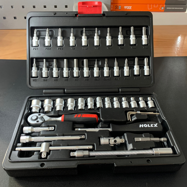 Tên sản phẩm: Bộ dụng cụ đa năng cần siết và soket 1/4 inch HOLEX 630002 46 chi tiết