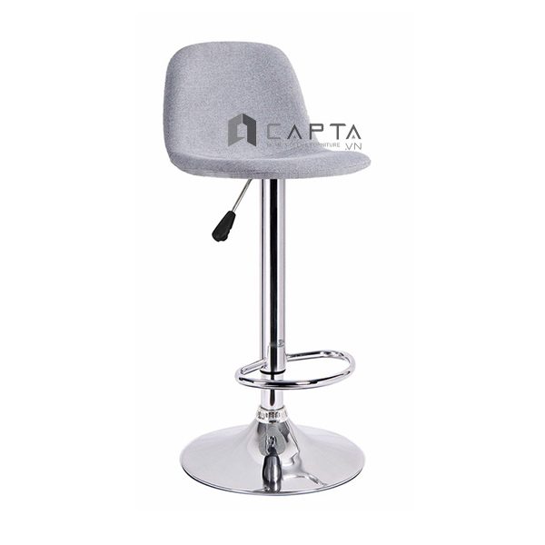 Ghế quầy bar nệm vải bố chân nâng hạ mạ màu inox (màu kem)