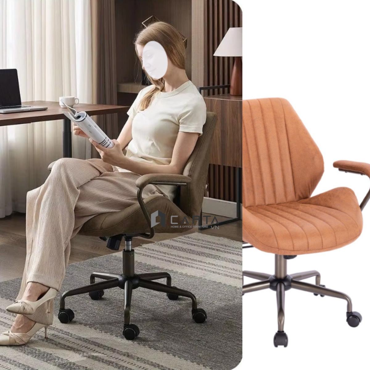Lưng ghế trung: Thiết kế lưng ghế trung giúp nâng đỡ tốt cho phần lưng dưới của người ngồi, giảm thiểu các vấn đề về cột sống khi phải ngồi lâu. Lưng ghế có thiết kế tinh tế, vừa vặn, phù hợp với tư thế ngồi tự nhiên của người sử dụng.