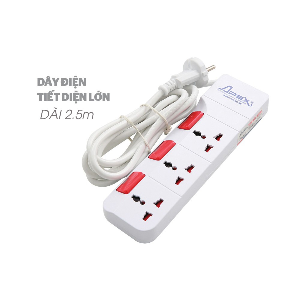 Giới thiệu [ GIẢM SỐC] Ổ cắm điện APEX OC1-3R, ổ cắm cao cấp của SUNHOUSE, 3 lỗ cắm, dây dài 2,5m - Bảo hành chính hãng