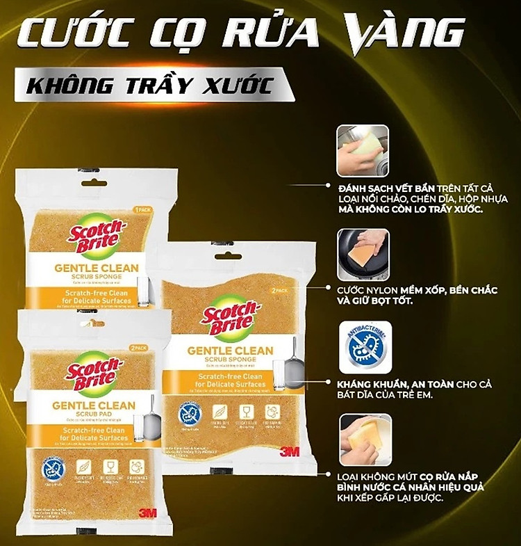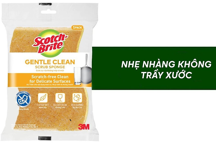 - Công nghệ hạt mài hiện đại nhất, không gây trầy xước vật dụng cần chùi rửa