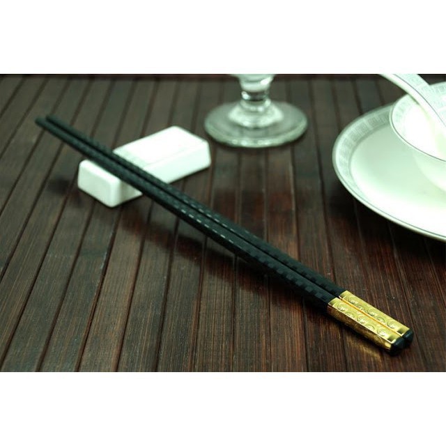 🍀 Đũa hợp kim chất lượng cao cấp nhất, mạ vàng, thân kẻ caro, chịu được nhiệt độ lên đến 260 độ C, đũa dài tiêu chuẩn 27cm. Màu đen, kẻ ô vuông, mạ vàng phía cuối, siêu bền.