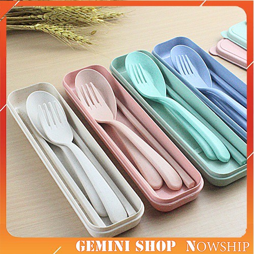 Giới thiệu Bộ hộp 3 món Thìa Đũa Dĩa Lúa Mạch Ăn Trưa Văn Phòng TD1 Sản phẩm giao ngẫu nhiên màu