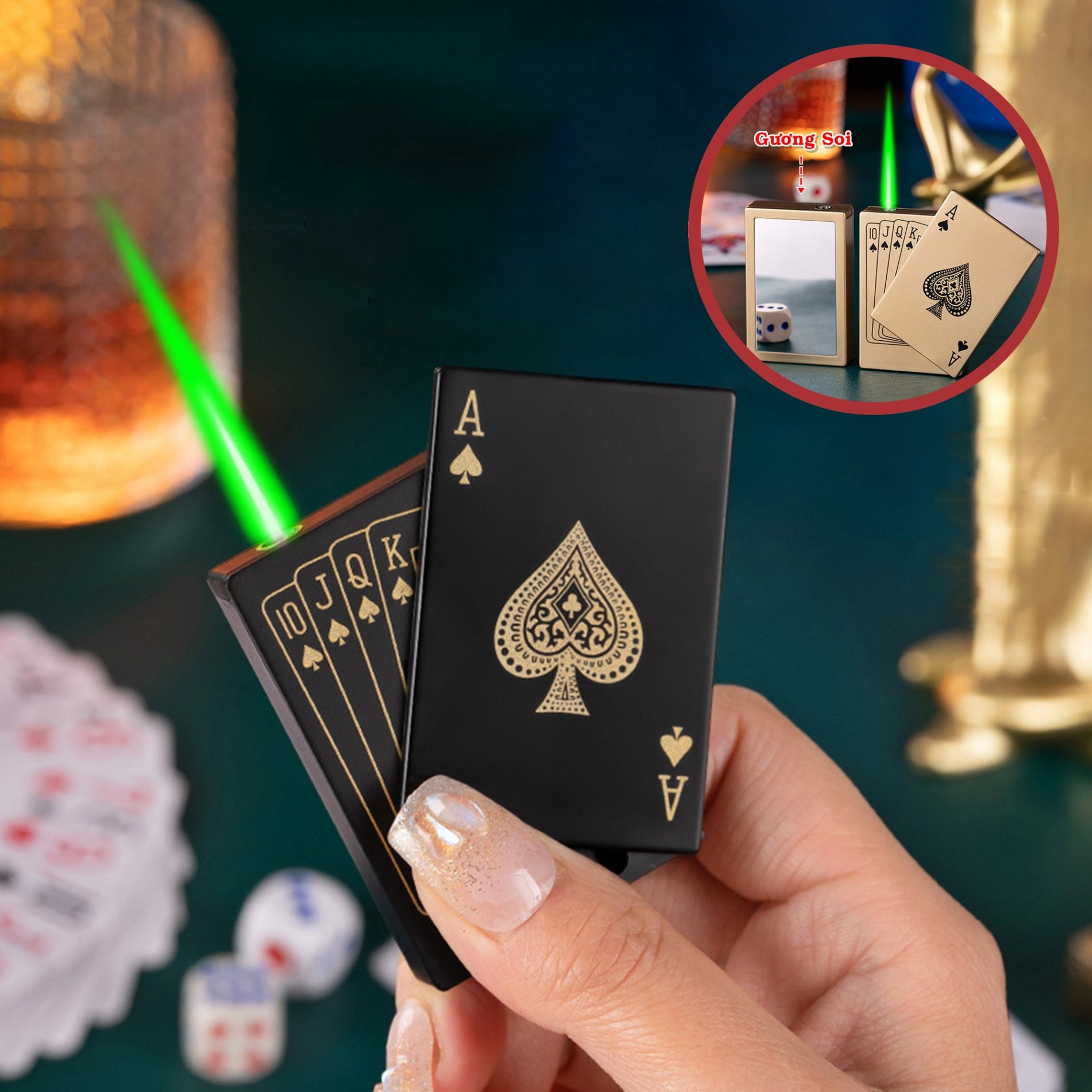 Hột quẹt bật lửa khè hình lá bài kiêm gương soi kim loại - xài gas