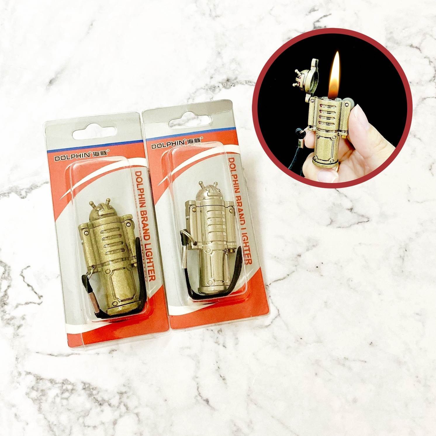 Hột quẹt bật lửa móc khóa DOLPHIN xăng đá cổ hình Robot kim loại - xài xăng
