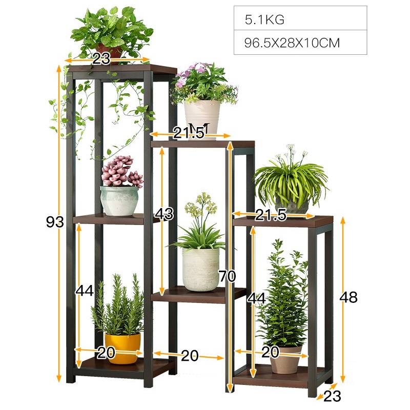 Tên SP : Vách/kệ cây trang trí 7 ô khung thép + MDF 65x23x90cm