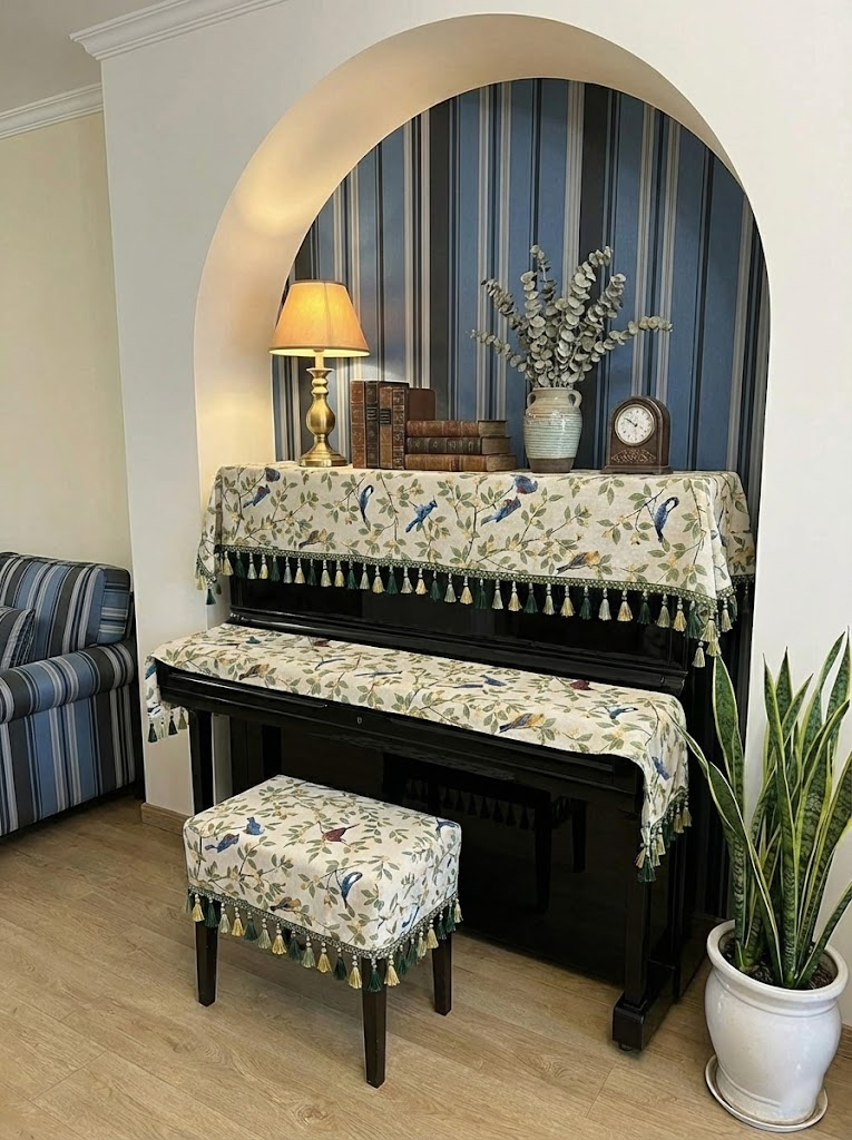- Khi nhận hàng bạn nên ủi mặt trái sản phẩm để phẳng các nếp gấp do quá trình đóng gói, vận chuyển sau đó phủ lên đàn piano sẽ rất đẹp