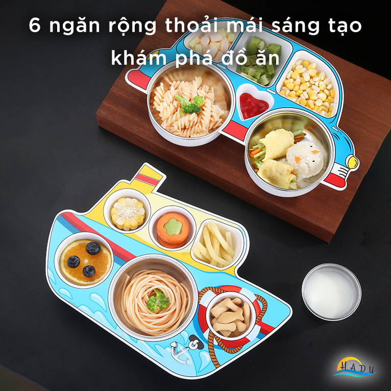 - Khay ăn được thiết kế hình một chiếc ô tô, tàu xinh xắn, màu sắc tươi sáng, nổi bật, chắc chắn sẽ thu hút bé rất nhiều, khiến bé hứng thú hơn với giờ ăn, đặc biệt là các bé đam mê ô tô
