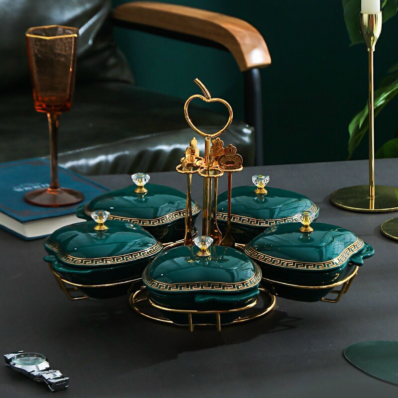 Khay đựng mứt Tết bằng sứ cao cấp, kiểu dáng sang trọng. Kiểu dáng tinh tế hiện đại, thiết kế decor tân cổ điển mới nhất năm nay.