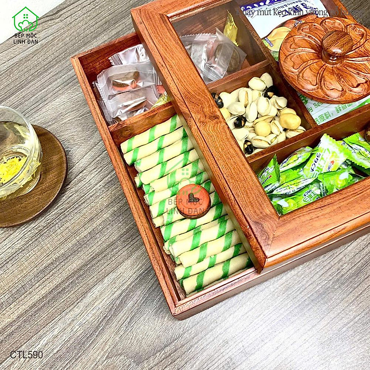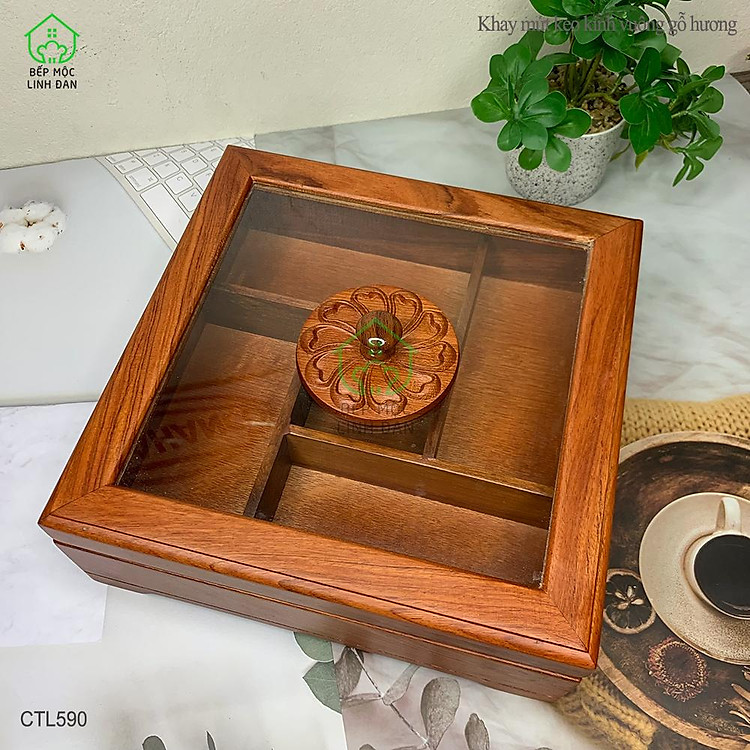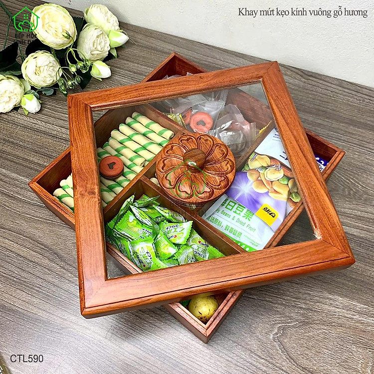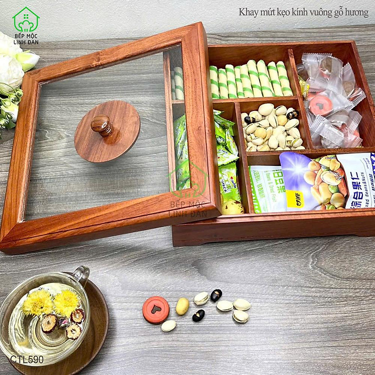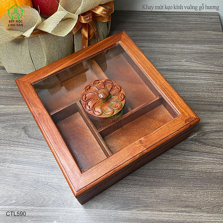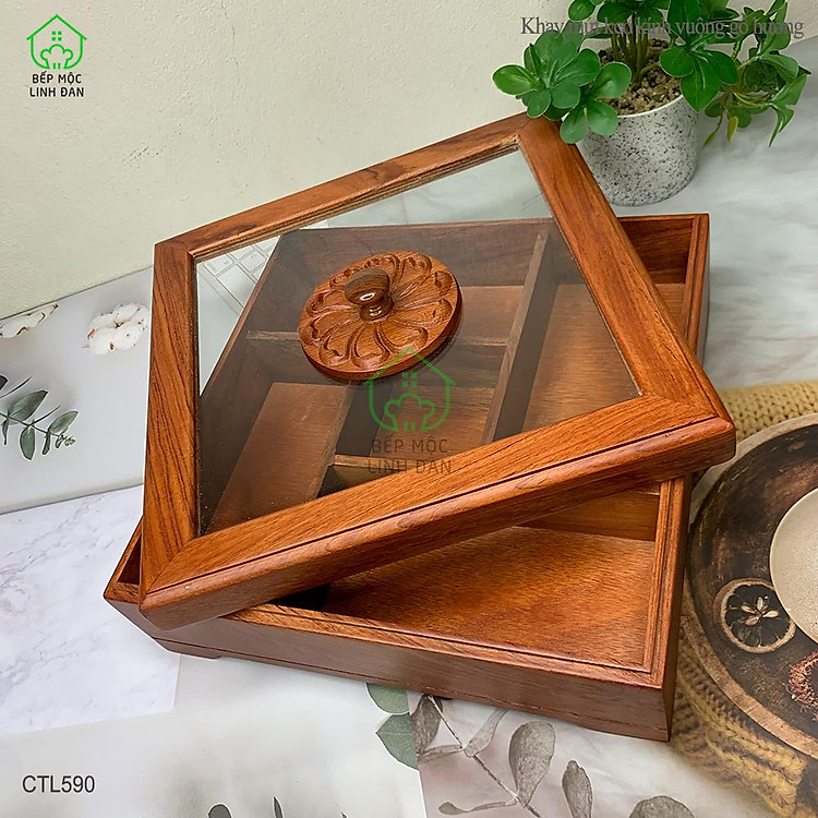 - Mã Số: CTL590 (Khay Bánh Kẹo Mứt Tết Gỗ Hương Nắp Kính Vuông)
