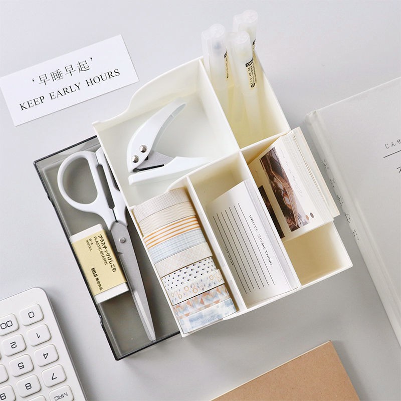 Giới thiệu Khay kệ nhựa kèm sticker đa năng loại tốt đựng đồ dùng cá nhân, phụ kiện để bàn (16x9.8cm) Xinh xắn