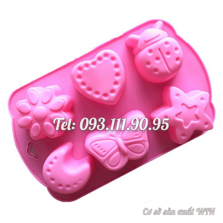 Khuôn silicon làm bánh, rau câu, socola 6 hình trăng, sao, bươm bướm, cánh cam, trái tim – Mã số 1266