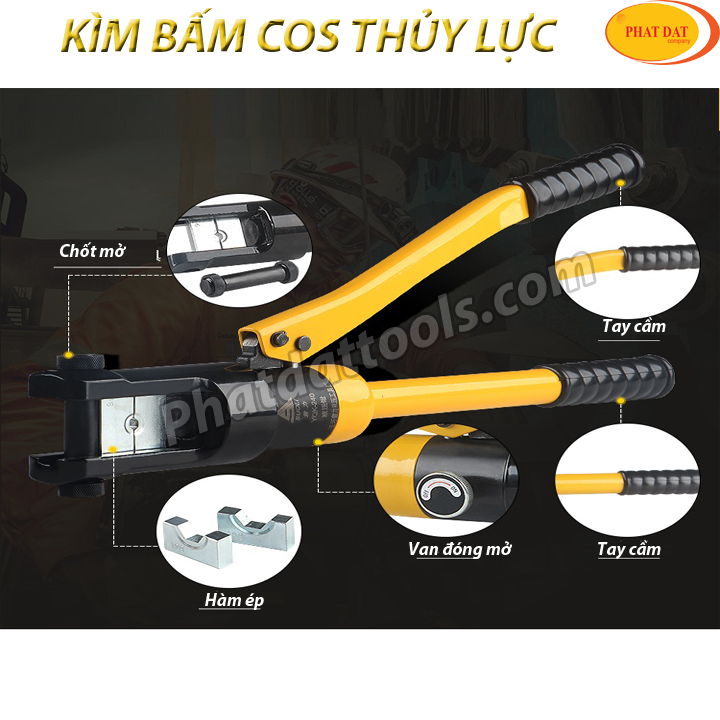 Kìm Bấm Cos Thủy Lực PADA YQK240 là dòng kìm cơ được thiết kế để ép các loại đầu cos loại lớn vào dây cáp điện hạ thế, trung thế hoặc cao thế ở các trạm biến áp, tủ điện cho công ty hay tòa nhà chung cư, hoặc ép nối các sợi cáp điện trên đường dây truyền tải điện cao thế cần lực ép lớn.