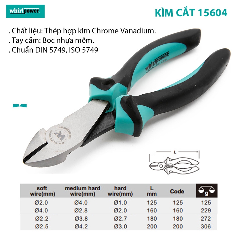 • Kìm cắt Whirlpower được làm từ hợp kim thép Chrome Molybdenum có khả năng chịu nhiệt cao, cách điện tốt, thích hợp cho nhiều điều kiện môi trường làm việc khác nhau. Sử dụng phổ biến trong ngành công nghiệp, cơ khí, chế tạo, sửa chữa, lắp ráp.