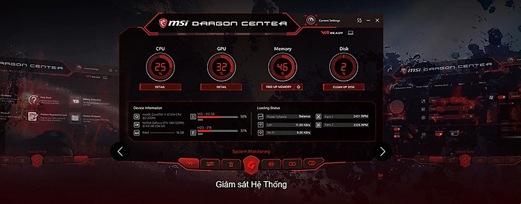 Bạn có thể giám sát và tối ưu được các ứng dụng của mình thông qua tùy chỉnh trên hệ thống, việc còn lại cứ để Dragon Center lo. Nó sẽ giúp bạn giải phóng bộ nhớ hệ thống để tự động ưu tiên đẩy hiệu suất cao nhất trong trò chơi.