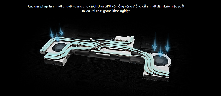 Nỗi lo về tình trạng laptop quá tải nhiệt độ khiến máy giật, lag sẽ không còn đối với MSI GL76, MSI đã đưa ra các giải pháp tản nhiệt CoolerBoost 5 độc quyền với 2 quạt lớn và 7 ống đồng làm mát cho hệ thống Mainboard, CPU và GPU trong thời gian vận hành nhiều giờ đồng hồ vẫn êm ái nhưng vẫn đảm bảo hiệu suất ổn định cho máy khi chơi game, đồ hoạ và Render.