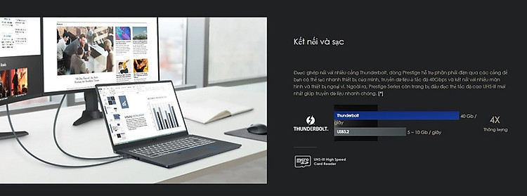 - Ngoài ra msi prestige 14 evo a11 còn trang bị thêm đầu đọc thẻ tốc độ cao UHS-III mới nhất giúp truyền dữ liệu nhanh chóng.