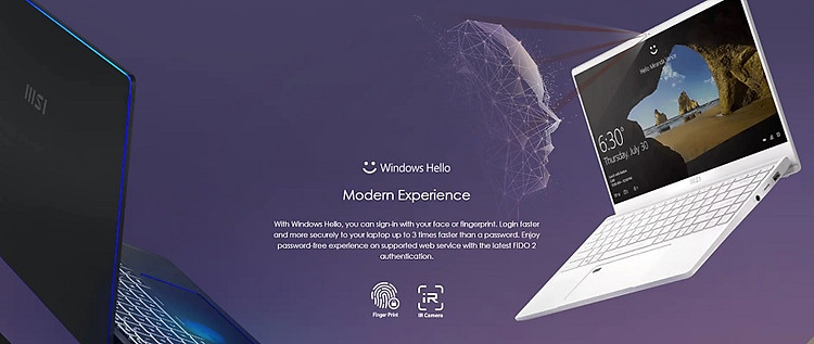 Với Windows Hello, bạn có thể đăng nhập bằng nhận dạng khuôn mặt hoặc vân tay để chắc chắn thông tin trong máy sẽ không bị đánh cắp. Công nghệ này giúp đăng nhập nhanh hơn và an toàn hơn vào laptop của bạn gấp 3 lần so với mật khẩu thường. Tận hưởng trải nghiệm không cần mật khẩu trên dịch vụ web được hỗ trợ với xác thực FIDO 2 mới nhất.