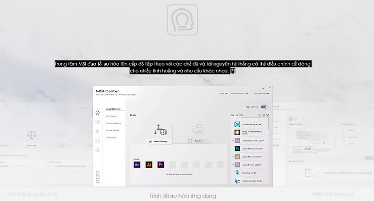 Đặc biệt ở MSI chính là có một trung tâm dành riêng cho các sản phẩm của MSI. Ở đây bạn có thể tùy chỉnh tối ưu hóa các chế độ hiển thị hoặc cấu hình tùy theo nhu cầu của mình.