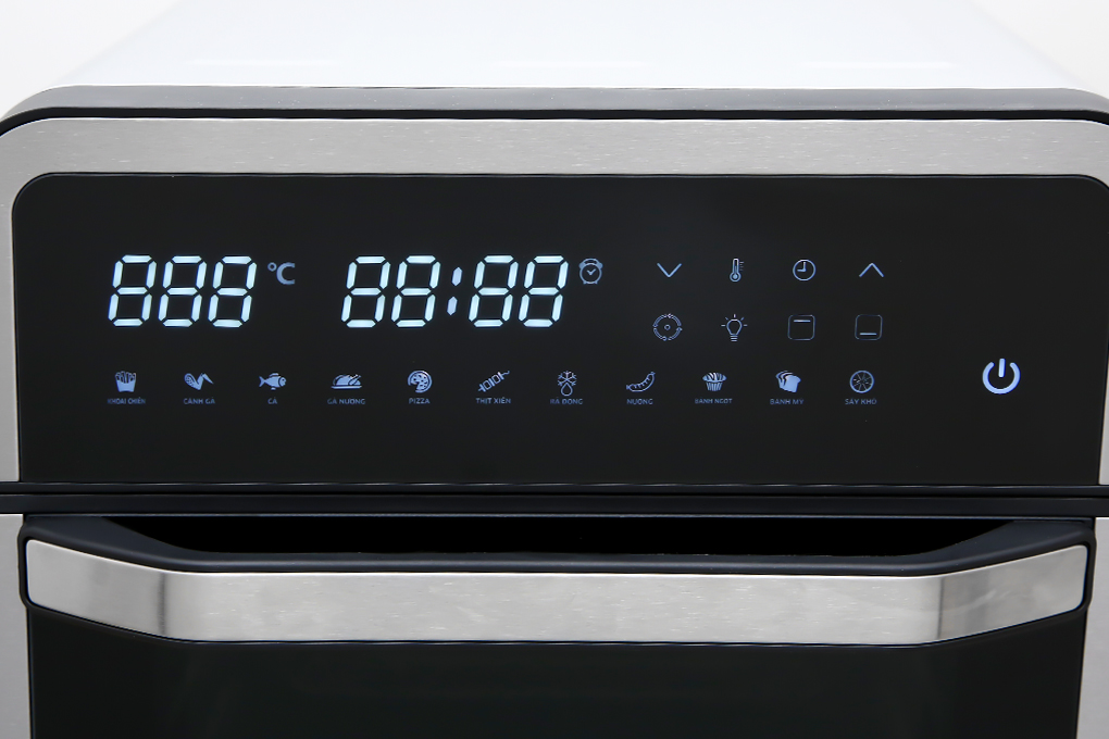 - Nhiệt độ lò có thể điều chỉnh từ 50 - 230°C, thời gian từ 0 - 60 phút.