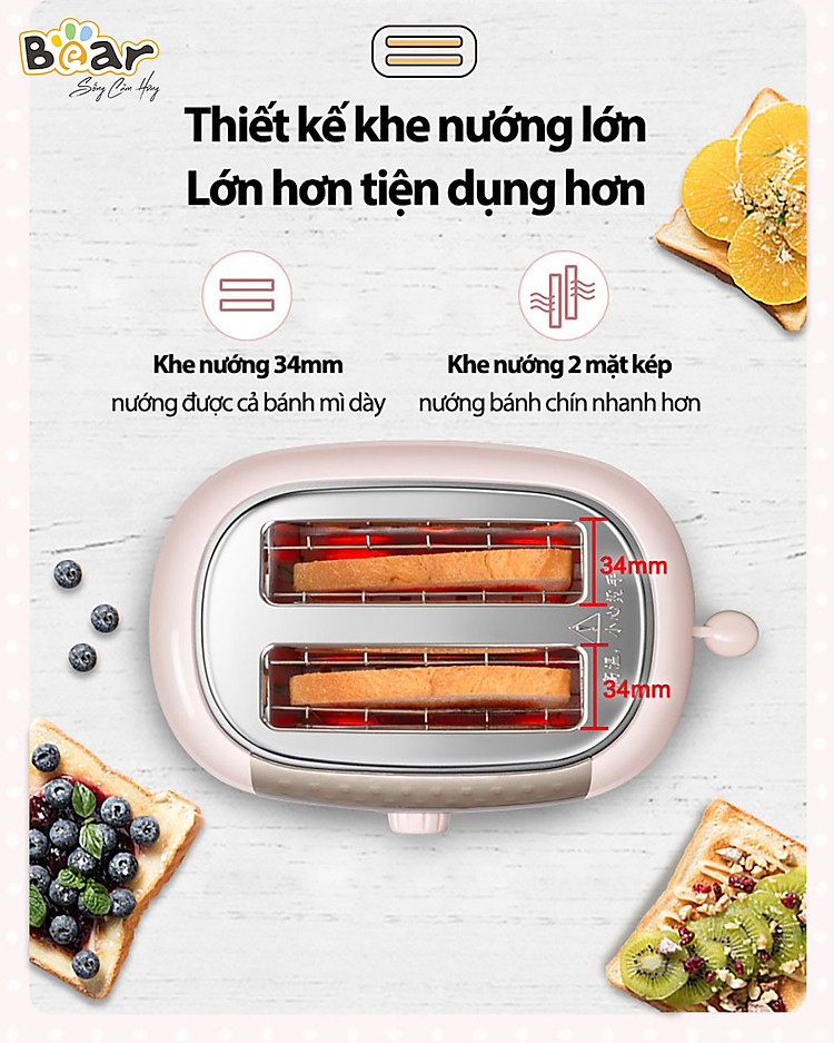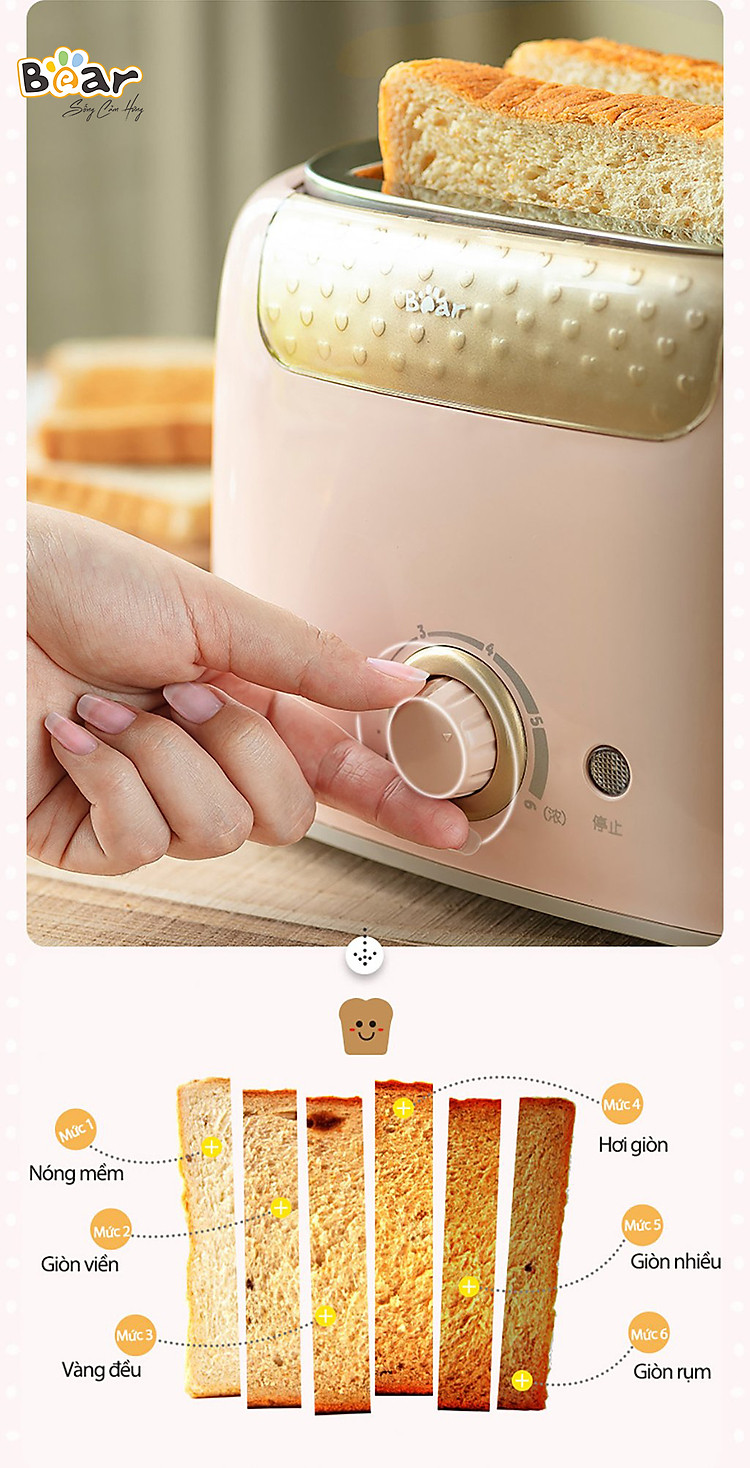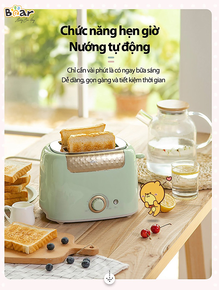 Bear cũng luôn chăm chút cho từng sản phẩm với các chi tiết tỉ mỉ như khay hứng vụn bánh có thể tháo dời giúp vệ sinh dễ dàng và nắp bảo quản chống bụi khi không sử dụng.