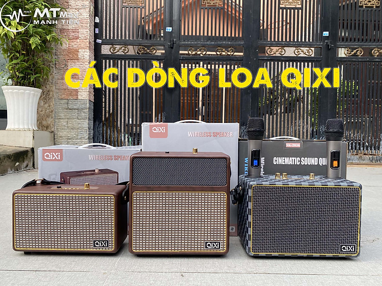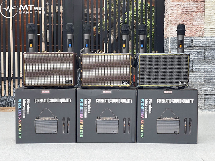 Loa Bluetooth Có Sẵn 2 Micro Không Dây Qixi Model SK 2036 Loa Di Động Mini Chuyên Hát Karaoke Nghe Nhạc Rất Hay, Kiểu Dáng Vintage - Âm Thanh Vòm 360 - Bass Uy Lực