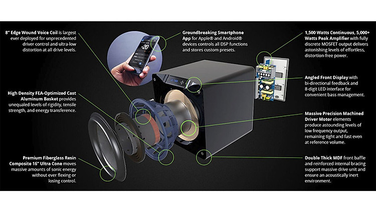 Bạn có thể điều khiển Loa sub SVS SB16-Ultra thông qua Ứng dụng dành cho điện thoại thông minh của SVS tương thích với các nền tảng Apple và Android,giải phóng toàn bộ chiều sâu, lực và sắc thái của loa siêu trầm tốt nhất thế giới. Ứng dụng loa siêu trầm SVS đột phá kiểm soát tất cả các chức năng DSP và lưu trữ các cài đặt trước tùy chỉnh một cách thuận tiện. Đó là cách dễ nhất để tinh chỉnh âm trầm vượt qua 16Hz ở âm lượng tham chiếu từ sự thoải mái tại chỗ ngồi yêu thích của bạn.
