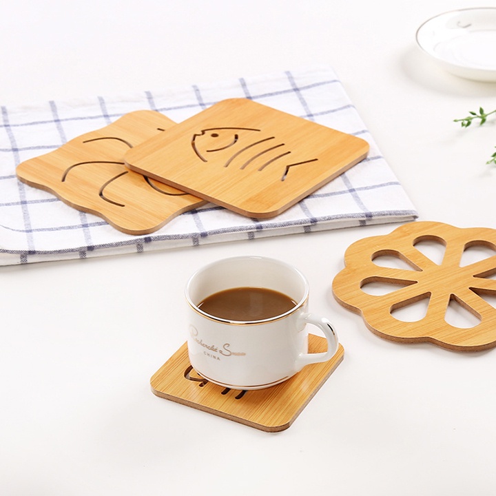 1. Sản phẩm dùng để lót xoong, nồi, chảo, bát đĩa, cốc chén … được làm bằng gỗ giúp cách nhiệt giữa xoong, nồi và mặt bàn hay tủ đựng thức ăn hiệu quả.