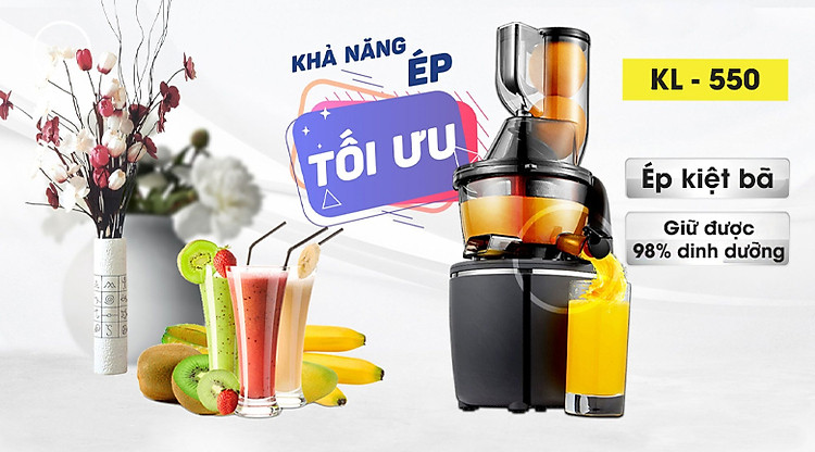Máy ép chậm Kalite KL-550 thiết kế hiện đại, sang trọng, ép kiệt bã bảo toàn được Vitamin trong quá trình ép là sự lựa chọn hoàn hảo cho gia đình của bạn.