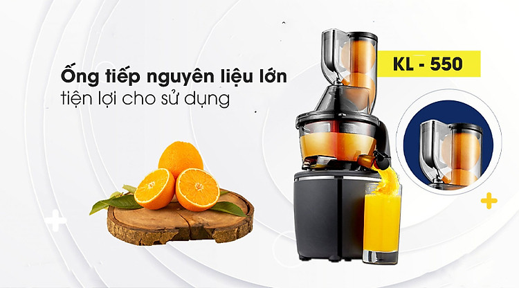 Cửa và ống tiếp lớn lên đến 8 cm, có thể ép cả quả táo hay quả cà chua không tốn thời gian và công sức để cắt nhỏ, giúp ta ép được nhiều hỗn hợp loại rau, củ cho nhiều hương vị khác nhau.
