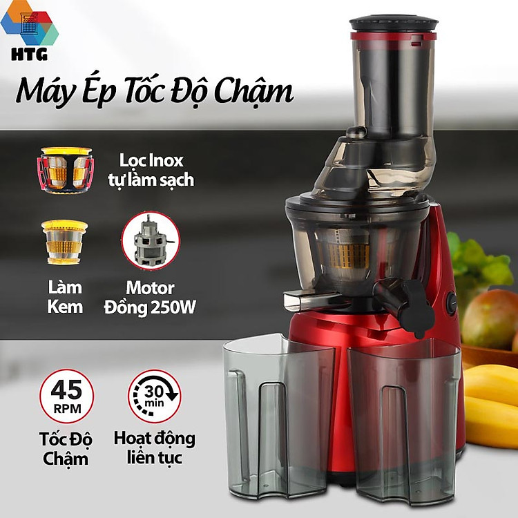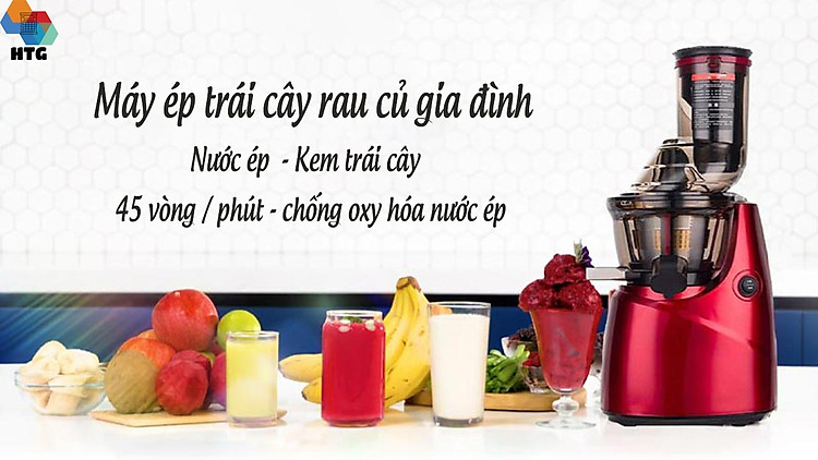 - Cớ chế ép tốc độ chậm chỉ còn 45 vòng/phút, không bị oxy hóa nước ép. Giữ nguyên hương vị tươi ngon