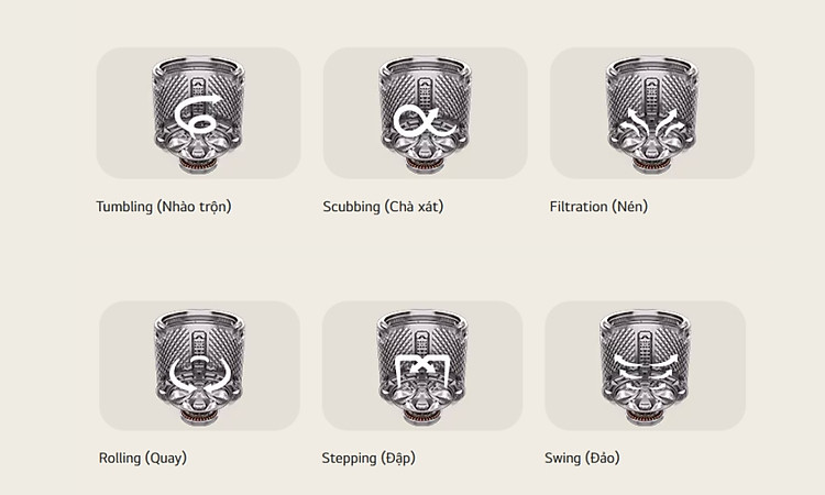 Công nghệ giặt | Công nghệ TurboWash3D Công nghệ AI DD bảo vệ sợi vải Công nghệ giặt hơi nước Steam (cửa trên) |