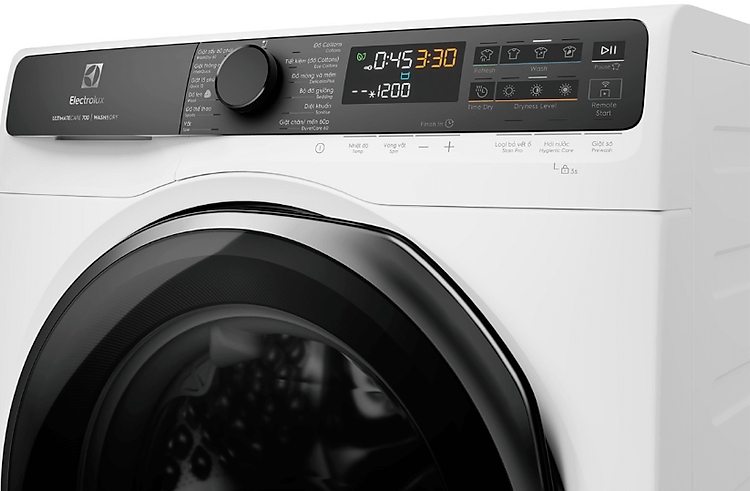 Bảng điều khiển | Điều khiển máy giặt từ xa thông qua ứng dụng Electrolux Vệ sinh lồng giặt Thêm đồ trong khi giặt Thêm quần áo khi máy đang giặt Thêm chương trình yêu thích Sấy trên mức độ khô mong muốn Sấy dựa trên thời gian mong muốn Khóa trẻ em Hẹn giờ giặt kết thúc Giặt sơ Chỉnh số vòng vắt Chỉnh nhiệt độ nước Loại bỏ vết ố Stain Pro |