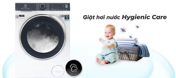 Chiếc này được ứng dụng công nghệ giặt hơi nước HygienicCare diệt khuẩn tiên tiến. Theo đó khi chu trình giặt kết thúc, công nghệ này sẽ phun vào lồng giặt hơi nước có nhiệt độ khoảng 40 độ C cho khả năng diệt khuẩn hiệu quả tới 99,99% và loại bỏ vết bẩn tối ưu để nâng niu sợi vải.