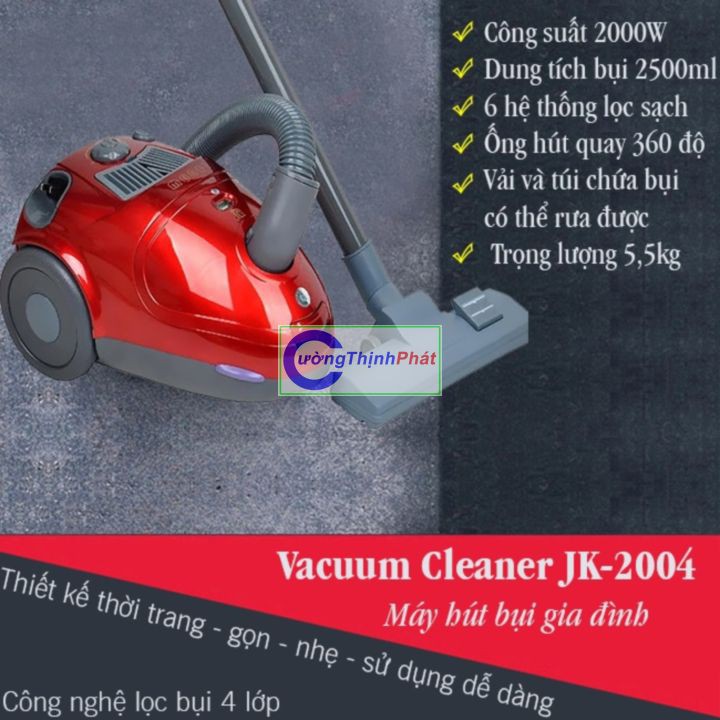 Máy hút bụi gia đình Vacuum Cleaner JK-2004 - 2000W thông minh giúp bạn làm sạch mọi ngóc ngách trong nhà thuận tiện di chuyển với trọng lượng nhẹ, thiết kế gọn mang đến hiệu quả nhanh chóng cho chị em rút ngắn thời gian don dẹp.
