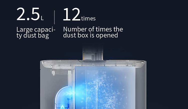 Hộp bụi của máy có dung tích 400ml và túi chứa bụi có dung tích lên tới 3,5 lít. Với dung tích lớn và khả năng tự hút rác của máy, bạn sẽ không cần phải vệ sinh hộp bụi mỗi ngày mà thay vào đó chỉ cần 1 tháng 1 lần đi vứt túi rác mà thôi.