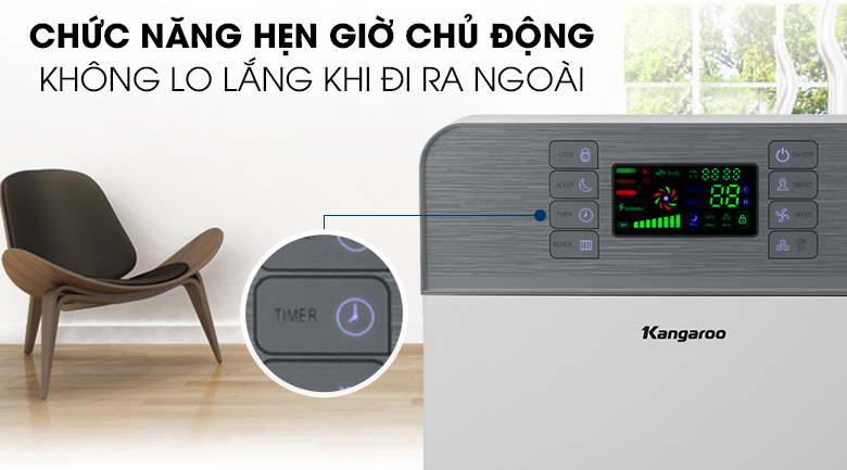 Bên cạnh đó, máy còn trang bị thêm chức năng tự động điều chỉnh công suất theo chất lượng không khí,giúp tiết kiệm điện hiệu quả. Chức năng hẹn giờ cho bạn chủ động trong thời gian lọc không khí, không cần canh chừng máy, không lo lắng khi đi ra ngoài mà quên tắt máy.