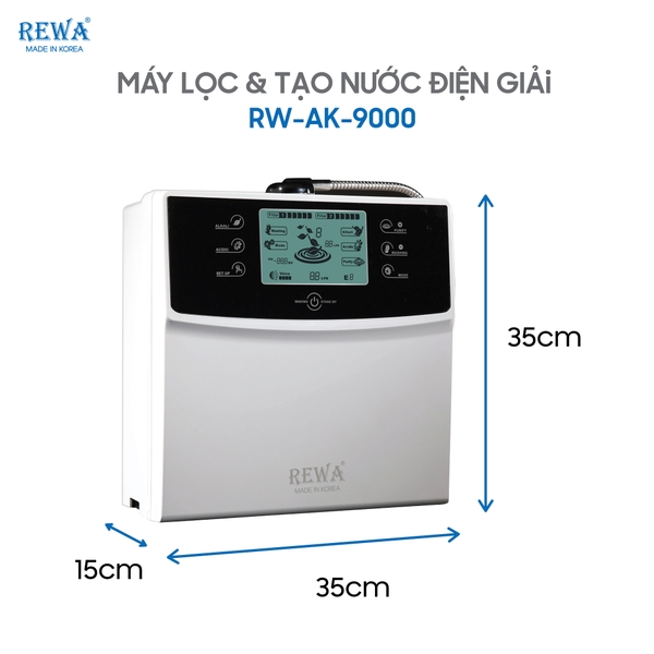 Thiết kế gọn nhẹ: Với thiết kế gọn nhẹ, máy Ankaline Hydro Kiềm RW-AK-9000 dễ dàng di chuyển và đặt trong các không gian hạn chế.