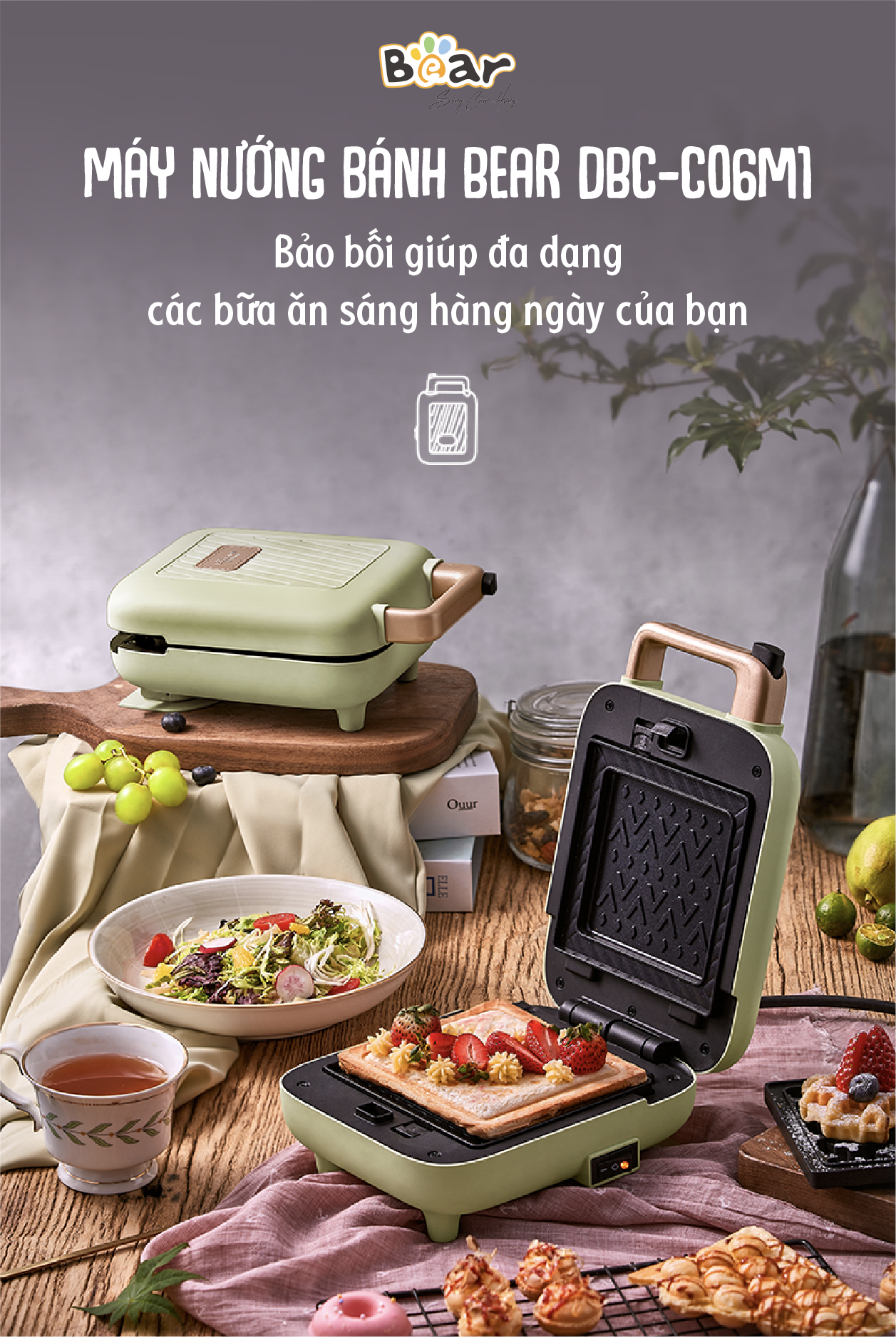 Máy Nướng Bánh Đa Năng Bear Nướng Bánh Sandwich, Crepe, Waffle Rán Trứng Xúc Xích DBC-C06M1