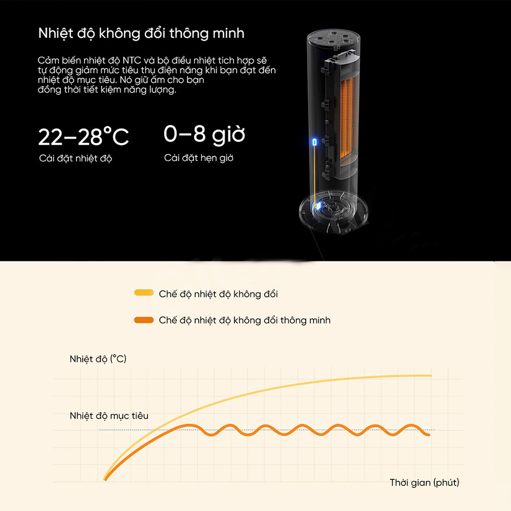 Chế độ nhiệt không đổi (22-28°C): Thích hợp để sưởi ấm không gian rộng lớn.