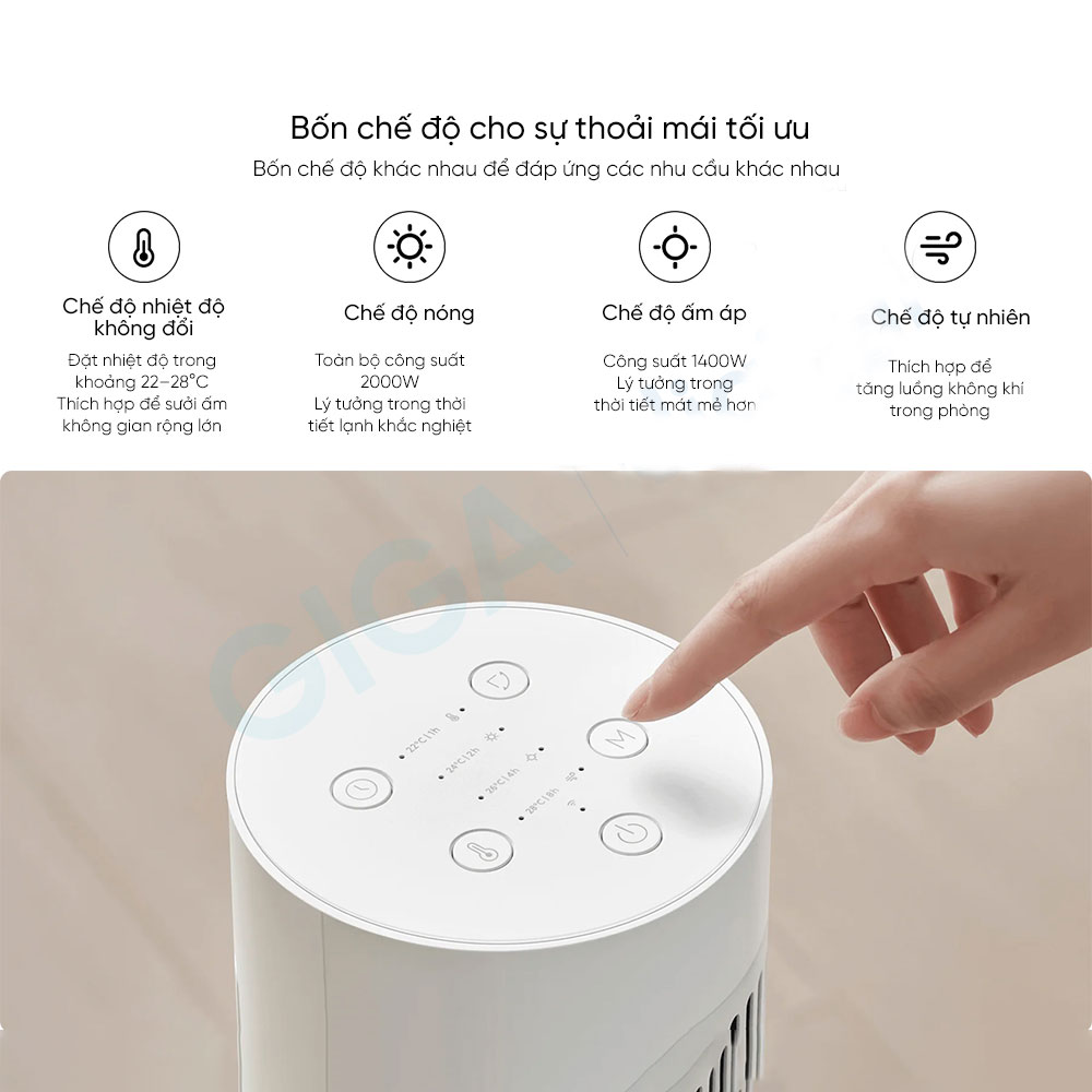 Máy sưởi Smart Tower Heater Lite được trang bị 4 chế độ tùy chỉnh bao gồm: Chế độ nhiệt không đổi, chế độ nóng, chế độ ấm áp, chế độ tự nhiên. Trong đó: