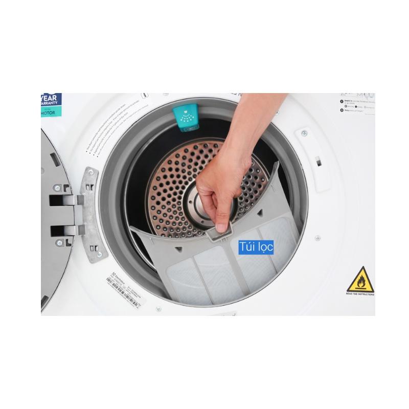 Máy sấy quần áo này được thiết kế với túi lọc bụi giúp lọc những hạt bụi vải nhỏ mà mắt thường không thể nhìn thấy được, những hạt bụi vải có thể ảnh hưởng tới làn da, sức khỏe của người sử dụng. Chức năng lọc bụi này mang lại quần áo sạch sẽ, giúp không gây kích ứng da, mẩn đỏ,