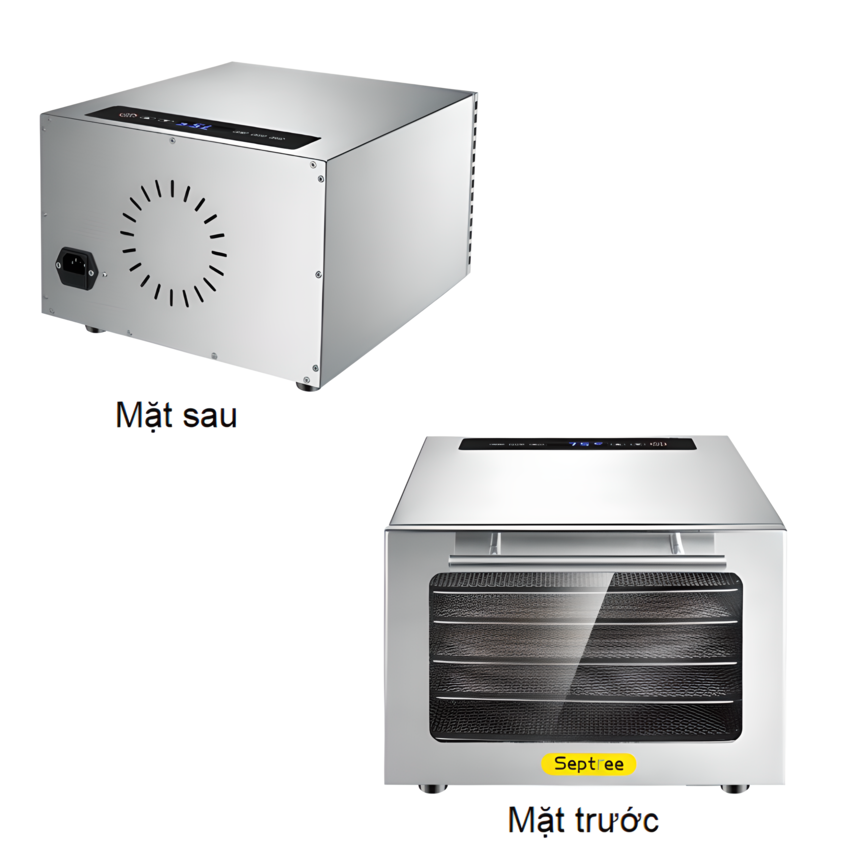 - Vì là thiết bị sấy có dung tích nhỏ nên giải nhiệt của Septree DBC-05A giao động từ 20 độ C đến tối đa 90 độ C có thể sấy hoa quả, thực phẩm đa dạng các loại. Tuy nhiên đối với các loại hoa quả, thực phẩm mọng nước và tinh dầu, thời gian sấy sẽ kéo dài hơn.